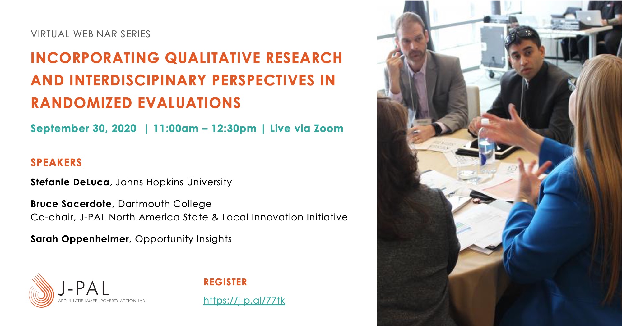 Stefanie DeLuca will be speaking at a virtual webinar hosted by J-PAL North America alongside Bruce Sacerdote and Sarah Oppenheimer. The webinar centers around "Incorporating qualitative research and interdisciplinary perspectives in randomized evaluations."