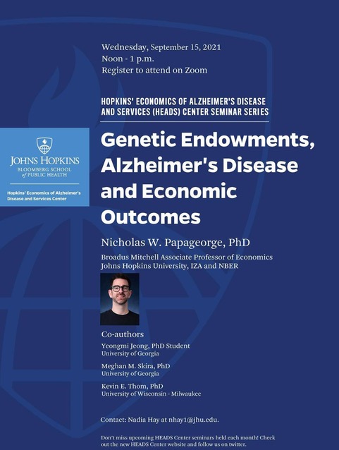 HEADS Center Seminar Series: Genetic Endowments, Alzheimer's Disease and Economic Outcomes
